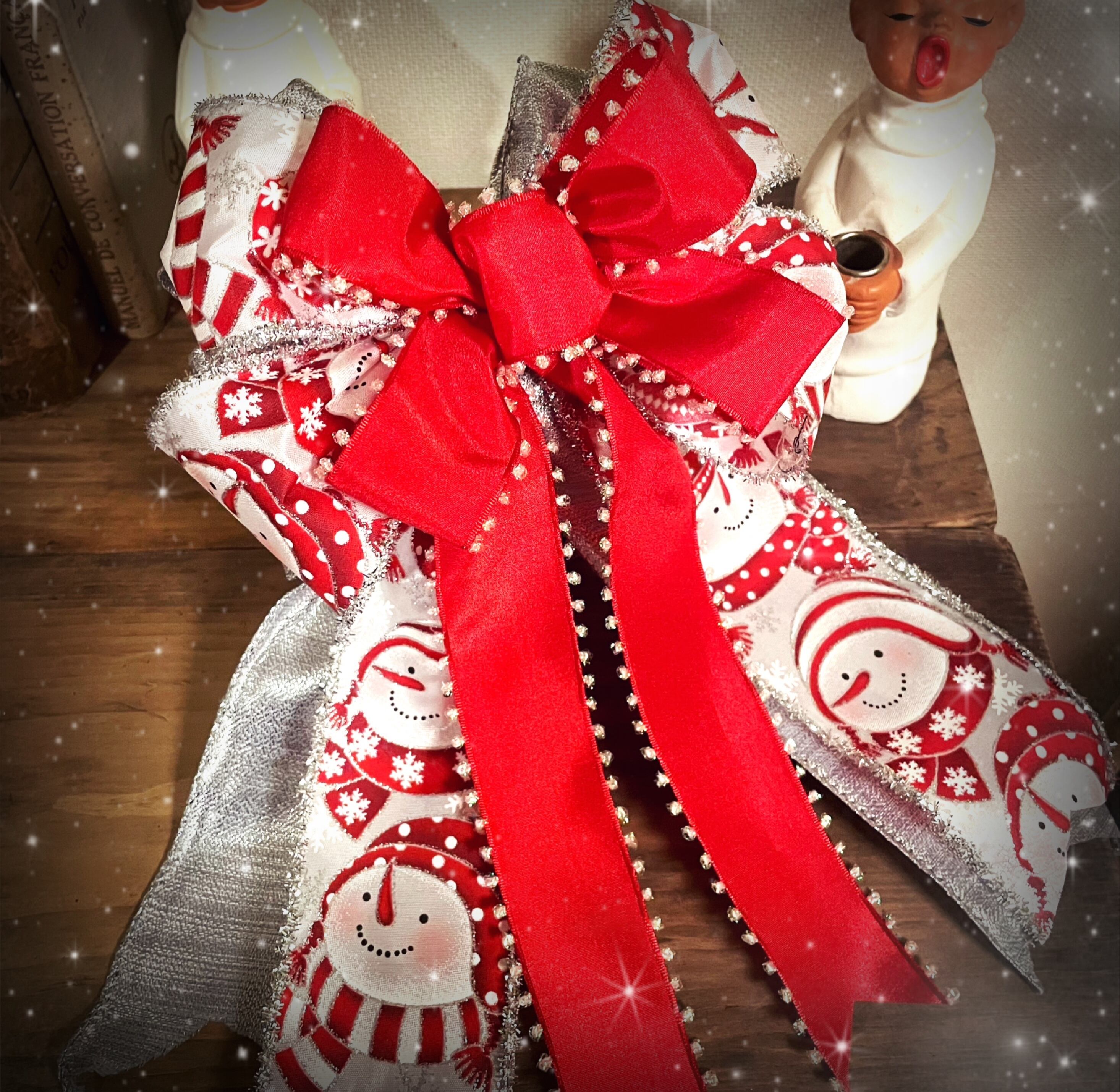 クリスマスを楽しく彩る「クリスマス ツリートップリボン」のご提案です!赤いリボンと雪だるまのデザインが可愛いらしく、クリスマスツリーやリース、スワッグ、さらにはラッピングにもぴったりのアイテムです。
